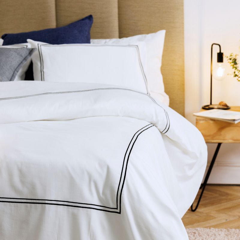 View full detailsWhisper Soft 400 Thread Count Sateen Egyptian Cotton 2 Line Black on White Satin Stitch Duvet Cover Set